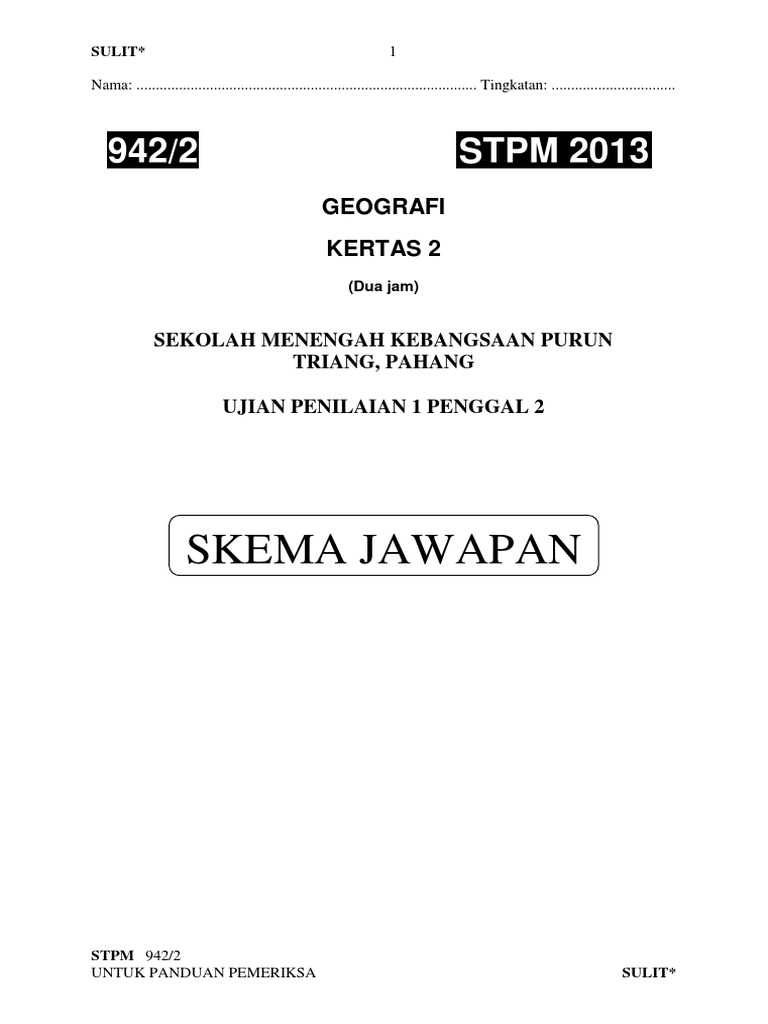 Peperiksaan Percubaan Stpm Baharu Sesi 2012 2013 Skema Geografi Penggal 1